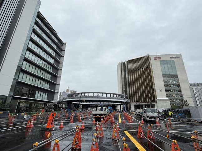| 近鉄四日市駅前が再開発で工事中。 この写真の地下に2025年9月の大雨で浸水した「くすの木パーキング」がある。 |