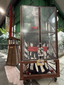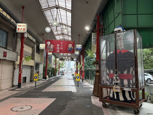 15年前に人のいない商店街で、カタカタと言いながら動いていた「こにゅうどうくん」のおじさんが居た! 「こにゅうどうくん」は、四日市市の公式マスコットで、商店街にいるのはおじさんの方。 今はいたずらされないようにゲージで囲われ、祭りのときに動かすそう。