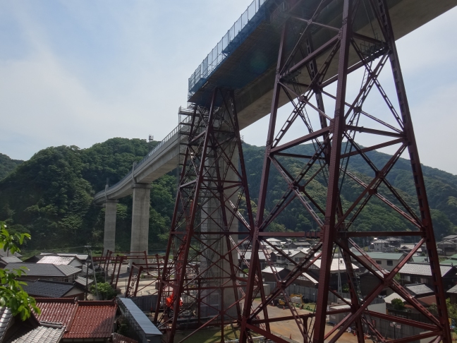 | 余部鉄橋を渡る。 次の電車がすぐに来るのであれば、下車して見学したいが、接続が悪くて断念。。 |