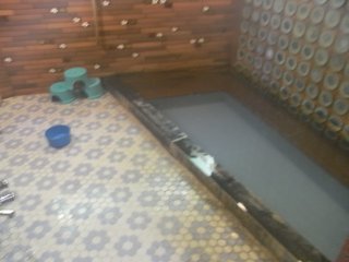 | 今回宿泊した、やなぎ荘 別館 内湯は2つあり、源泉賭け流し。家族湯で、鍵がかかるため、男女別に分かれておらず、空いていればどちらの風呂に入ってもよい。 |